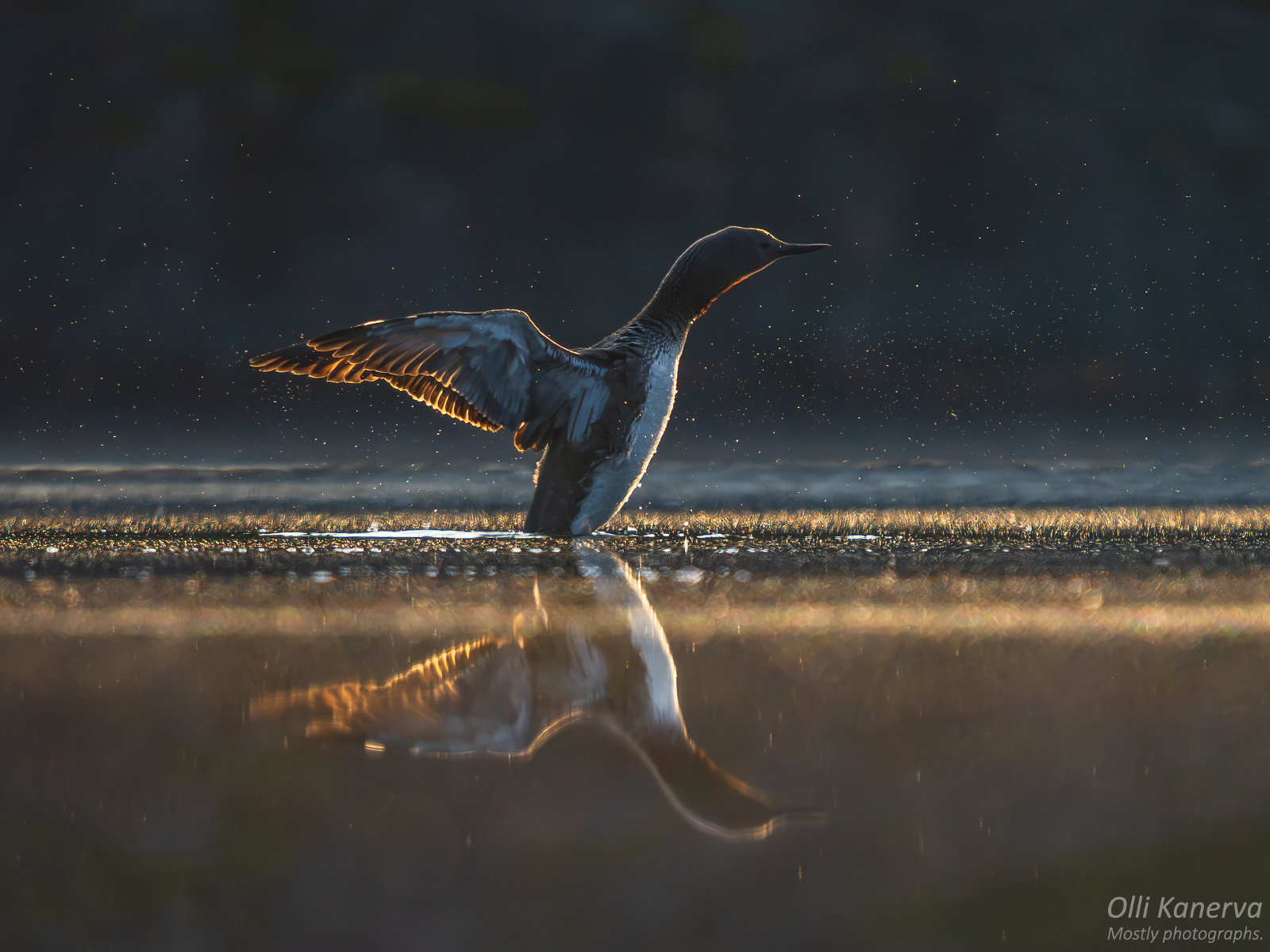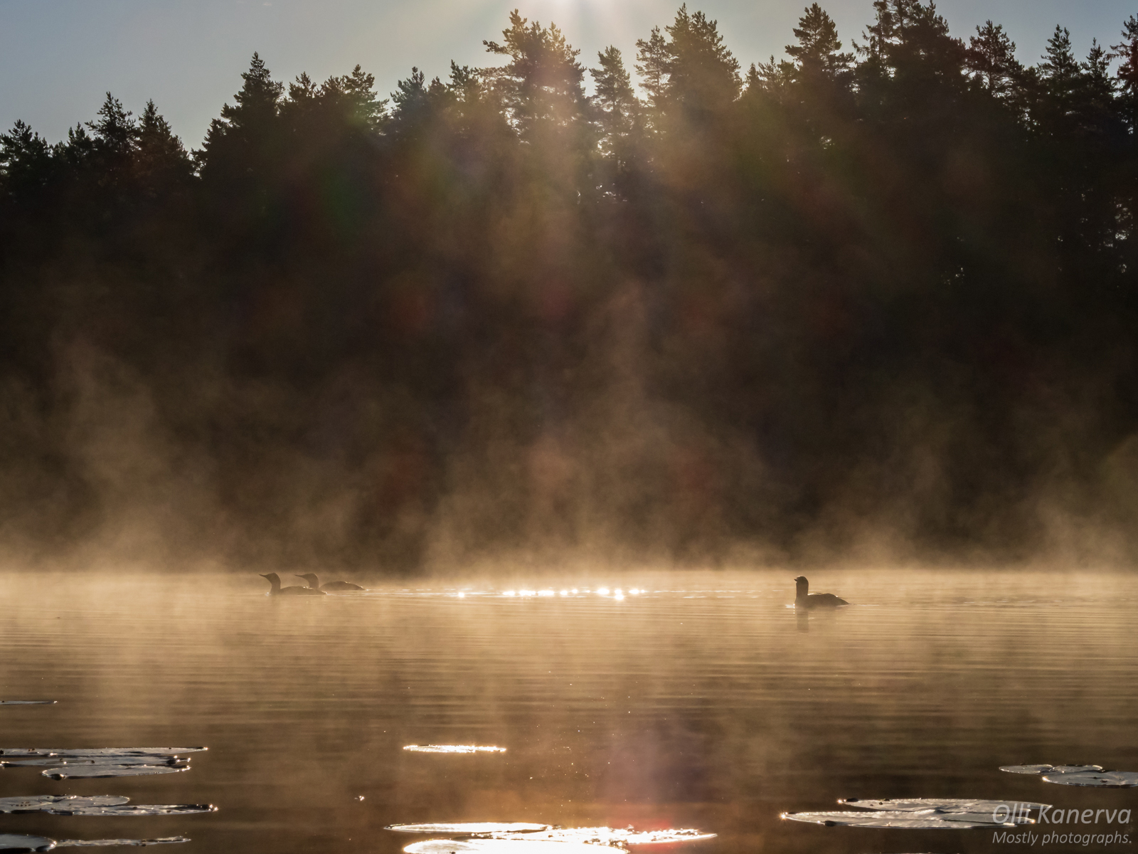 Elokuussa kaakkurit eivät enää yöpyneet lammella, mutta saapuivat lammelle hyvissä ajoin ennen auringon nousua. Elokuun kahdeksannen ja yhdeksännen päivän välisenä yönä kävin lammella kuvailemassa revontulia täyden kuun loisteessa.